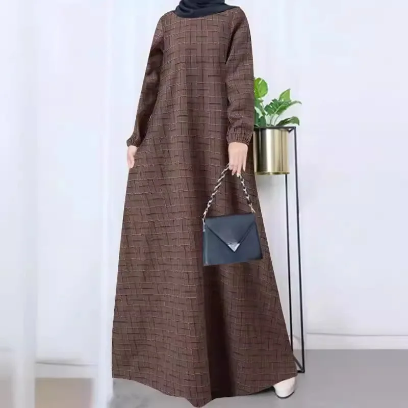 Dress Abaya Women Dresses Kaftan Eid Muslim Modest Vestidos Plaid Print Saudi Long Robe Jalabiya Ramadan Morocco Dubai Abayas